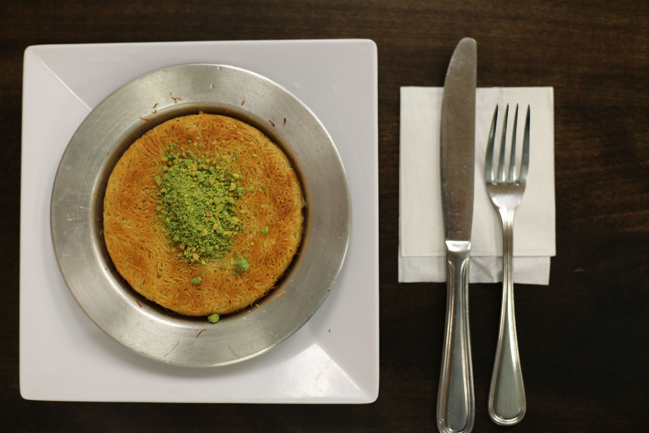 Two layers of crunchy golden kadayif, filled with cheese and baked until golden and crispy and steeped in syrup
