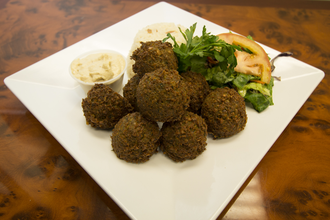 Chickpeas, parsley, onions and garlic mashed and lightly fried. Served with hummus.