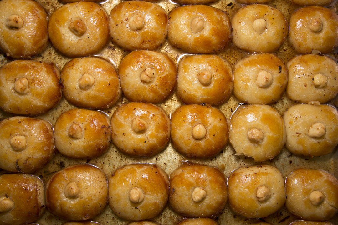 Sweet pastry made of extremely thin sheets of phyllo dough layered with chopped nuts and honey syrup, baked with butter and cut into diamonds.